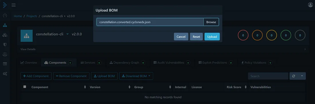 Add Constellation CLI as a project in Dependency Track.