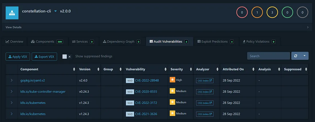 Make sure to also import all Constellation container images into Dependency Track to get the full view!